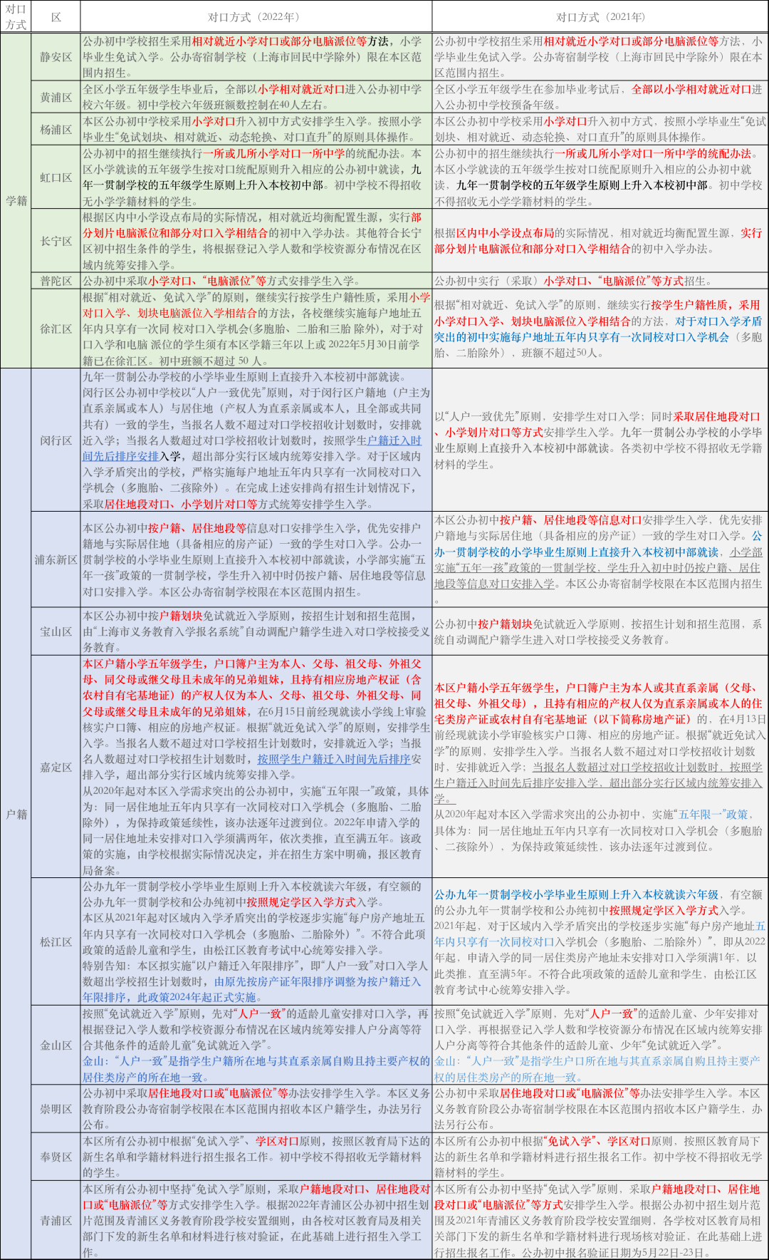 值得注意的是,哪怕是学籍对口的区,在小升初时也会参考户籍情况进行统筹安排,例如徐汇、虹口。